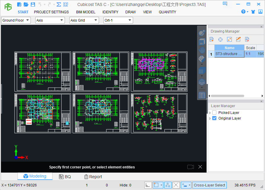 In actual projects, to make it easy to draw models, you can import CAD/PDF drawings in TAS C, and then identify them directly or take them as references.